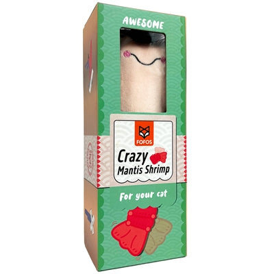 Fofos Crazy Mantis Shrimp 30x8x8 cm är en rolig kattleksak med olika texturer. Denna glada räka från Fofos kommer snabbt att bli din katts favoritlekkamrat! Räkan rör sig själv och är laddningsbar (laddningskabel ingår). De olika texturerna gör den till en intressant leksak. De mjuka färgerna och det söta ansiktet fulländar utseendet.