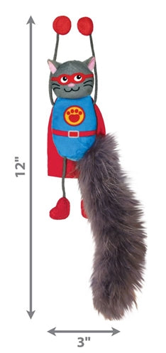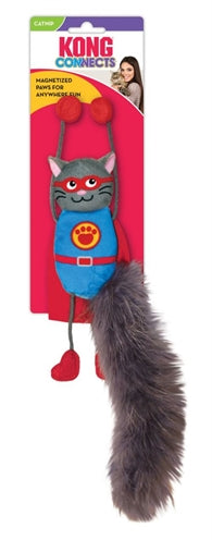 Kong Connects Magnicat, 30,5 cm, är en kattleksak från det populära märket KONG, formad som en superhjältekatt med magnetiska ben, prasslande papper och kattmynta. Motion är bra för katter! Men eftersom att slappa också är en hobby för de flesta, finns det ibland brist på aktivitet och stretching. Det är ett minne blott med denna roliga KONG Connects Magnicat! Denna roliga kattleksak är designad som en superhjältekatt och har magnetiska framben. Detta gör att du kan fästa katten var du vill, till exempel på klösbrädor, stolar, metallbord och dörrar, kylskåpet och allt annat du kan tänka dig. Katten kommer gärna att göra sitt bästa för att nå leksaken tack vare den långa fjäderliknande svansen och de vingliga bomullsrepbenen, vilket ger rörelse som garanterat kommer att hålla din katt engagerad. Naturligtvis gör det prasslande pappret och kattmyntefyllningen leksaken ännu mer intressant!