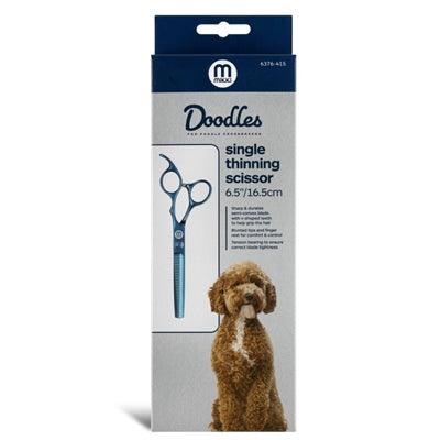 Mikki Doodle gallringssaxen, enkel, 16,5 cm, är perfekt för att trimma din Doodles päls hemma. Regelbunden trimning förhindrar tovor och håller ditt husdjur rent. Med dessa Mikki gallringssaxar kan du göra detta hemma också! Dessa saxar är perfekta för att tunna ut tjock päls och för en spräcklig yta. Borsta pälsen noggrant innan du börjar och ge ditt husdjur pauser under trimningen för att förhindra obehag.