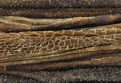 - Tillverkad av torkad nötdjurshud