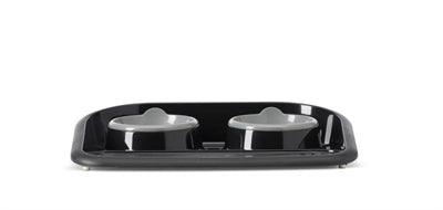 Savic Butler Happy Planet Black Feeding Station, som mäter 45 x 36 x 8 cm, är en kombinerad mat- och vattenskål för katter eller små hundar, tillverkad av miljövänlig, diskmaskinssäker plast. Denna praktiska mat- och vattenskålskombination är bra för ditt husdjur, ditt hem och planeten! Denna praktiska plastbricka innehåller två plastskålar med höga kanter för att minimera spill och kladd. Du kan använda skålarna för torrfoder, våtfoder och vatten. Eftersom skålarna är löstagbara från brickan är de lätta att rengöra, även i diskmaskin! Ännu bättre är att setet är tillverkat av återvunnet material, vilket avsevärt minskar miljöpåverkan från produktionen.