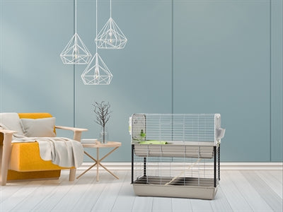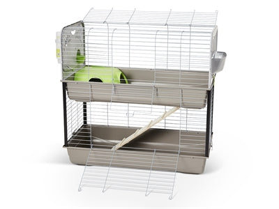 En dubbel gnagarbur med modern design. Det översta lagret har två sidopaneler i plast med integrerade matskålar, vattenflaskor och hö-/grönsaksställ. En trästege förbinder den övre och nedre nivån. Buren inkluderar också ett gömställe/plattform i ett. Den nedre buren har en stor dörr för enkel åtkomst till den nedre delen. Den övre buren har en liten dörr framtill och en större dörr upptill för enkel åtkomst. Caesar är hopfällbar, vilket gör den enkel att transportera.
