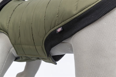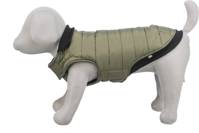 Trixie hundjacka Arlay mörkgrön i storlek M 45 cm är en vattenavvisande mellanjacka för hundar, som kan användas med sele och har en tuff stil. Din hund kommer att se snygg ut med denna praktiska hundjacka från Trixie! Arlay hundjacka är tillverkad av polyester och har ett modernt utseende. Den har en fleecefoder, är lätt vadderad och vattenavvisande. Tack vare den justerbara, elastiska magflappen och kardborreknäppningen i bröstpartiet är jackan enkel att ta på och av. Jackan kan kombineras med en sele via blixtlåsen på ovansidan och är lämplig som mellanjacka under hösten och början av våren.