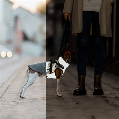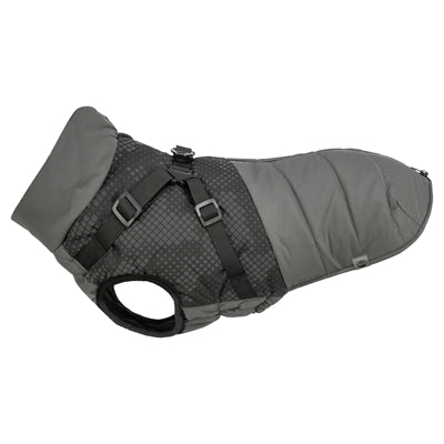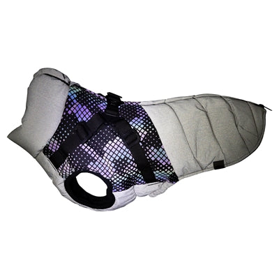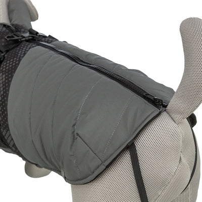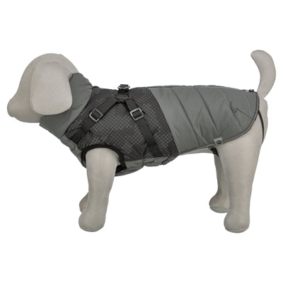 Trixie Hundjacka Pontis med sele, reflex, grå är en varm jacka som ger din hund optimalt skydd under mörka och kalla dagar. Tillverkad av helt reflekterande polyester, säkerställer denna jacka maximal synlighet, medan fleecefodringen och den varma vadderingen ger komfort och värme. Den genomgående dragkedjan på ryggen gör på- och avtagningen enkel och det elastiska inslaget i bukområdet ger extra flexibilitet. Öppningen i kragen ger din hund mer rörelsefrihet, och med de justerbara benöglorna för bakbenen sitter jackan alltid perfekt.