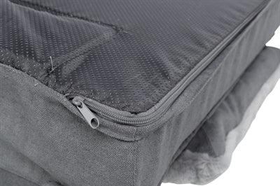 Utsidan är klädd i ett vävt tyg som inte bara är bekvämt att sitta på utan också slitstarkt och motståndskraftigt. Överdraget är avtagbart och tvättbart, vilket gör sängen lätt att hålla ren. Den halkfria baksidan förhindrar att soffan glider när din hund kliver på eller av, vilket ger extra stabilitet och säkerhet.