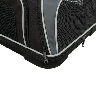 Tack vare sin eleganta svarta och grå design kompletterar denna hundväska nästan all reseutrustning och smälter sömlöst in i alla interiörer när du reser till flygplatser eller tågstationer. Väskan är tillverkad av slitstark EVA och polyester och är både robust och formstabil, vilket säkerställer att din hund känner sig skyddad, även i trånga miljöer.