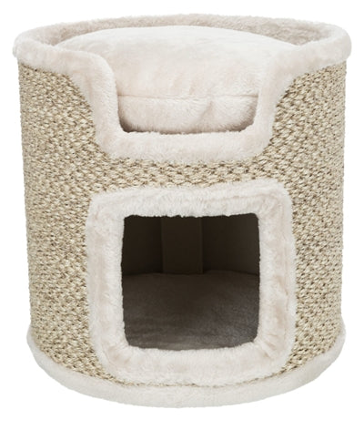 Trixie Ria klösträd ljusgrå/natur 37X37X37 cm är en rund klösträd för katter med sisalklösträd, ett gömställe, en kudde och vadderade liggplattformar. En underbar egen plats för din katt behöver inte ta upp för mycket plats, vilket denna roliga klösträd från Trixie bevisar. Klösträdet Ria är ett kompakt klösträd för katter med två våningar. Liggplattformarna är vadderade för mer komfort, och den medföljande vändbara kudden säkerställer att din katt kan drömma bort i en ljuvlig, mjuk omgivning. Gömstället längst ner är täckt med härlig mjuk plysch och fleece, och utsidan av klösträdet är täckt med sisal för att ge din katt gott om klösmöjligheter. Att klösa är ett naturligt behov för katter, så se alltid till att det finns tillräckligt med möjligheter att hindra din katt från att börja klösa på möblerna!