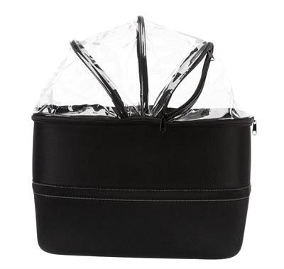 Korgen har ett nätöverdrag som förhindrar att din hund eller katt hoppar ur. Samtidigt ger nätet utmärkt luftcirkulation, så att ditt husdjur kan resa bekvämt även på varma dagar. Regnigt väder? Använd det medföljande regnskyddet för att hålla ditt husdjur torrt. Föredrar du att resa med korgen öppen? Öppna skyddet och fäst din hund eller katt ordentligt i det integrerade kopplet.